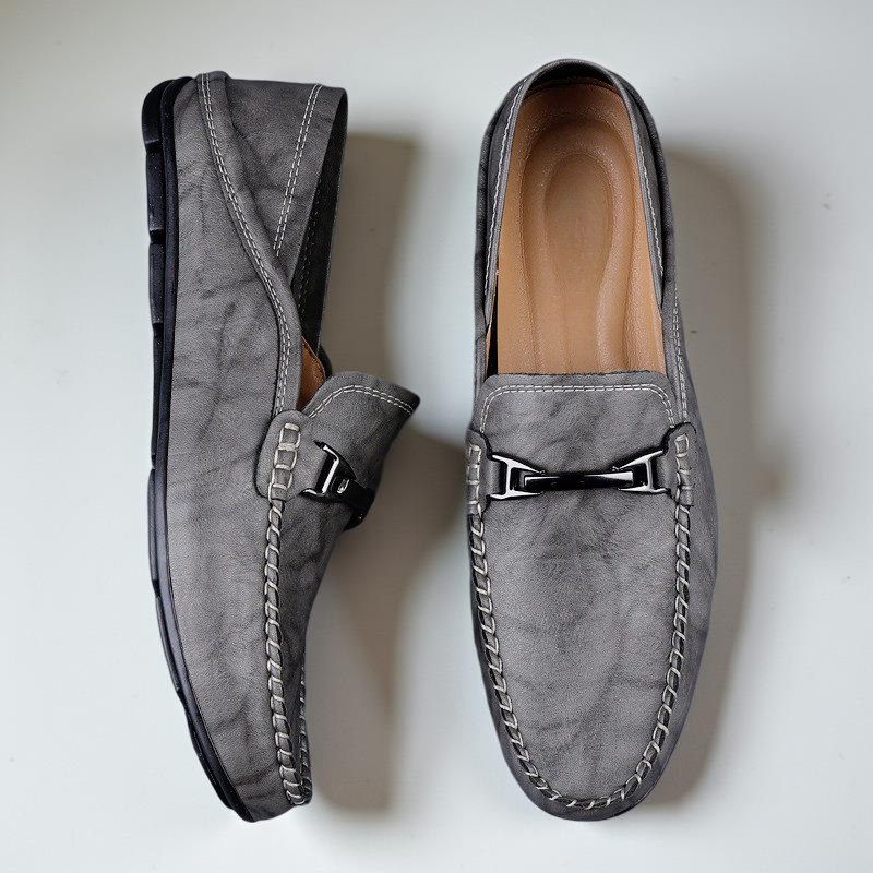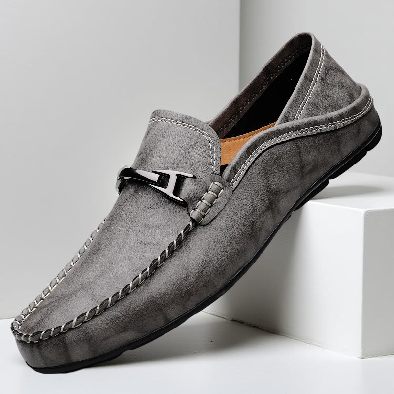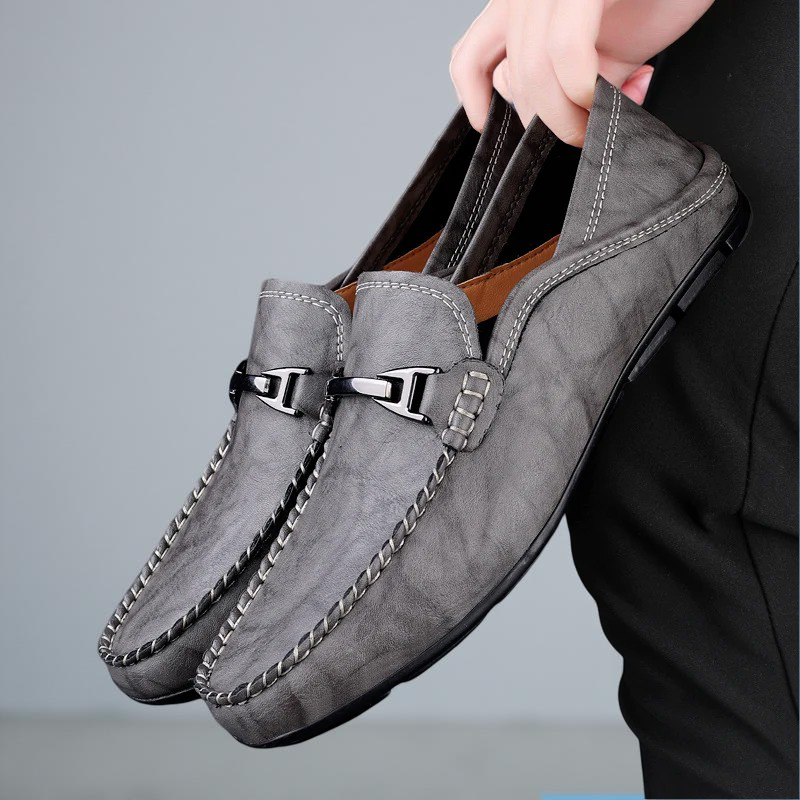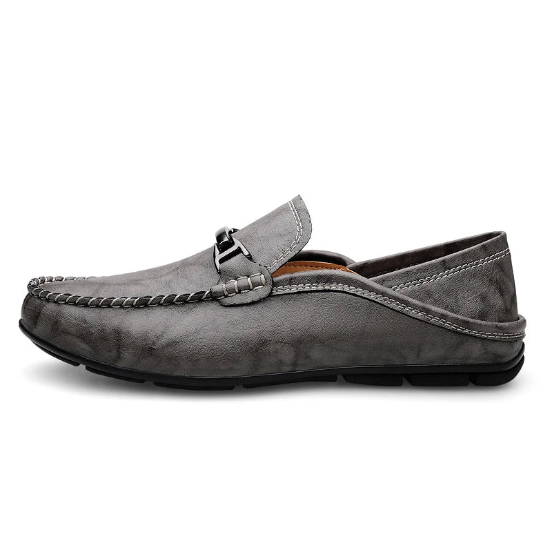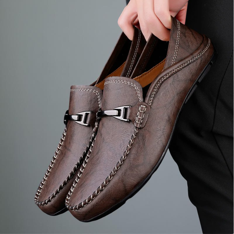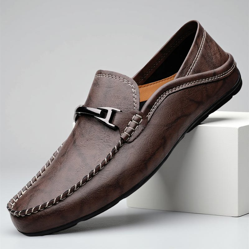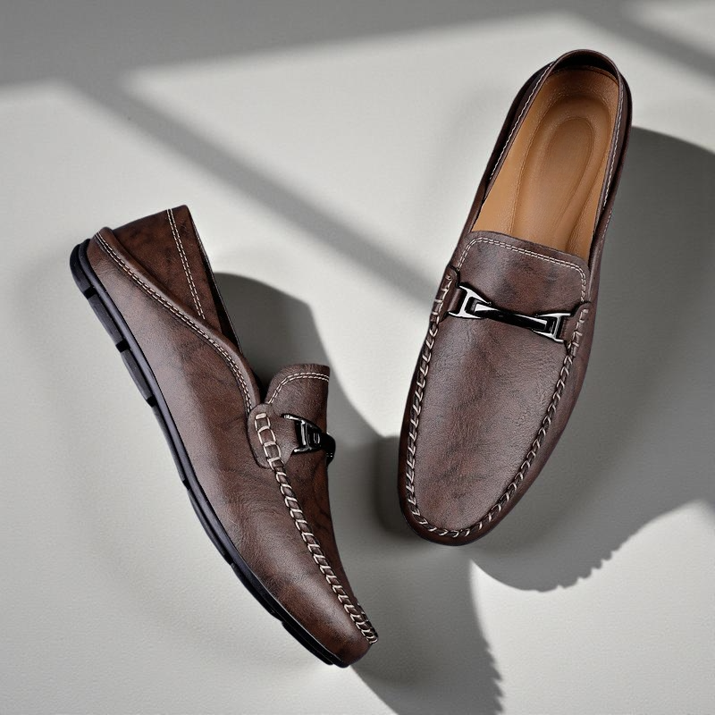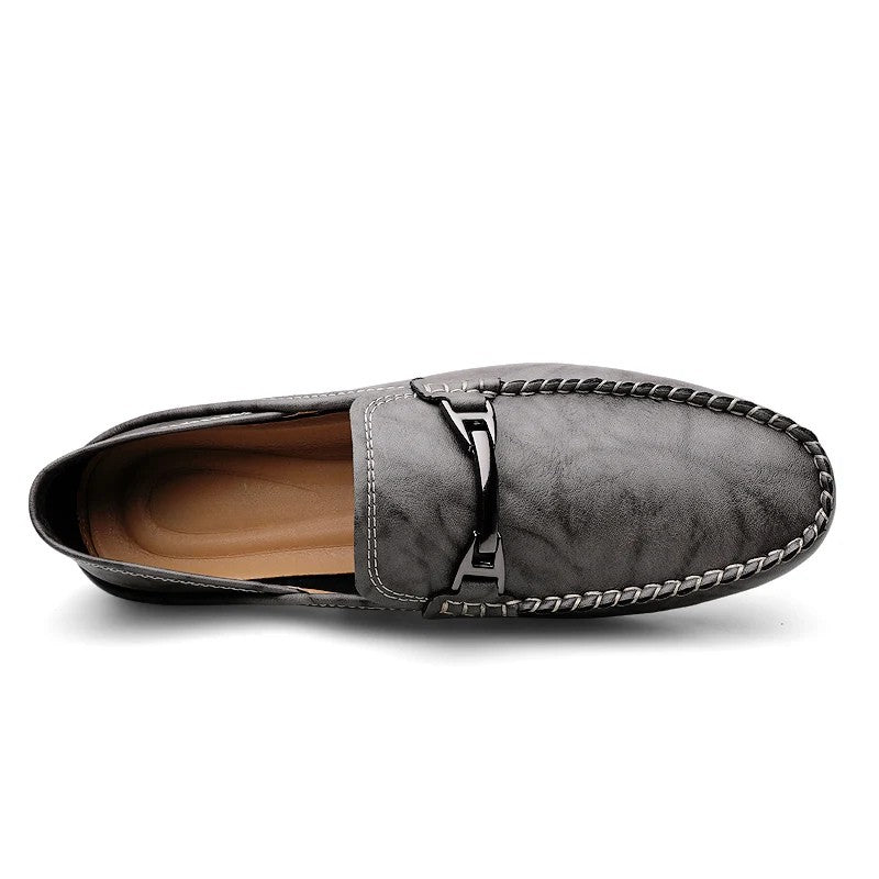 Handmade from the finest leather, these Italian loafers deliver all-day comfort with a cushioned insole, smooth inner lining, and hand-stitched detailing throughout. Finished with a sleek metal accent across the front for a premium look.
