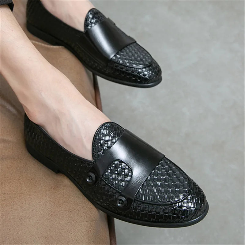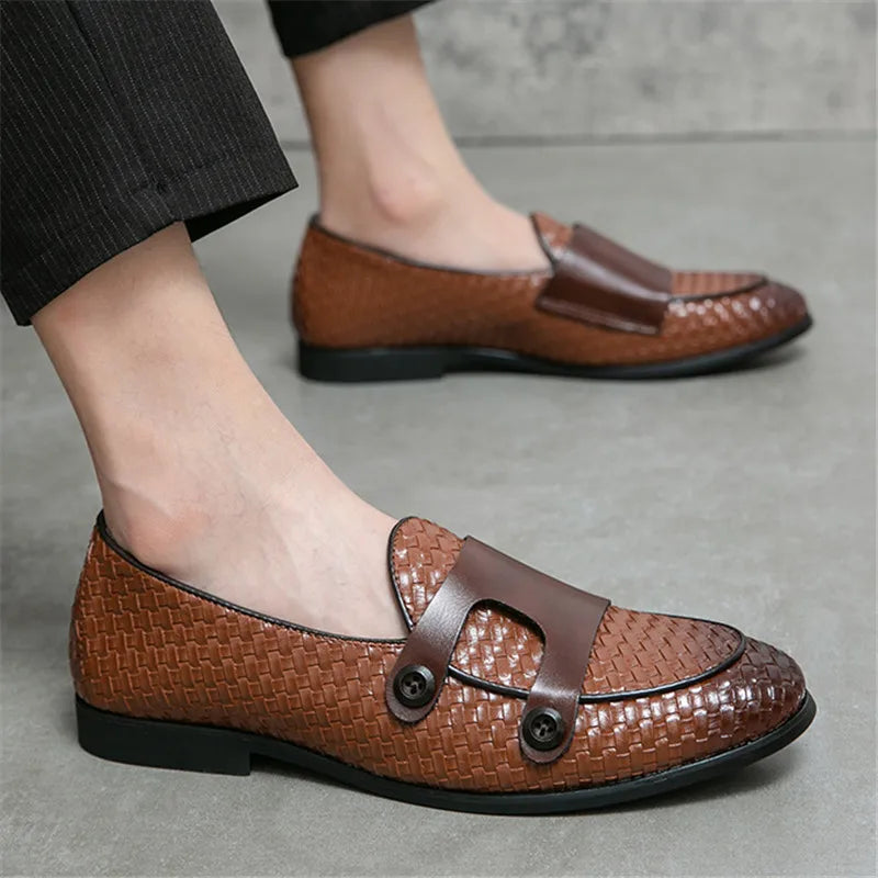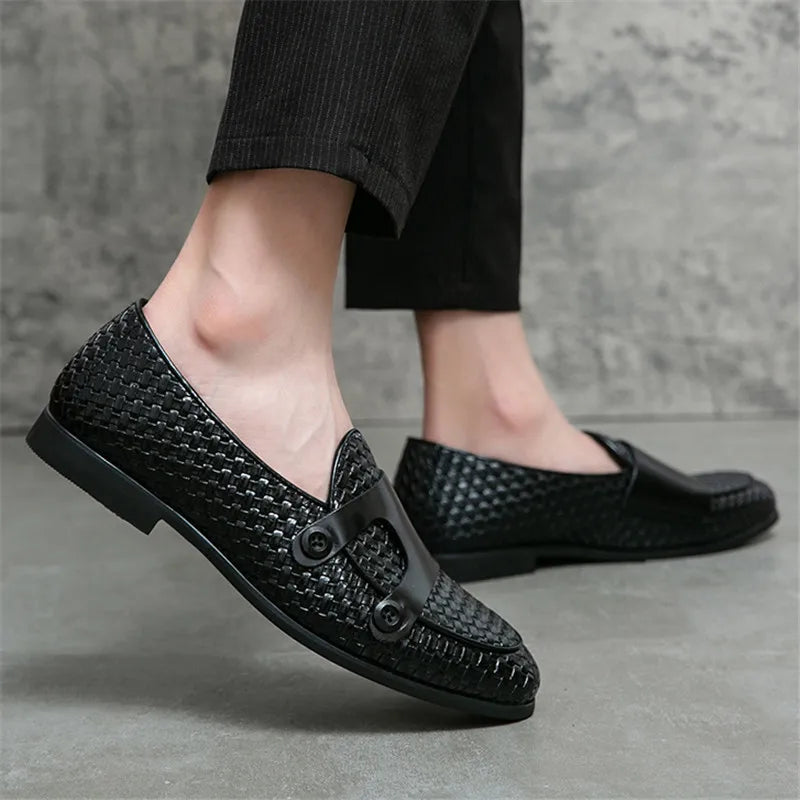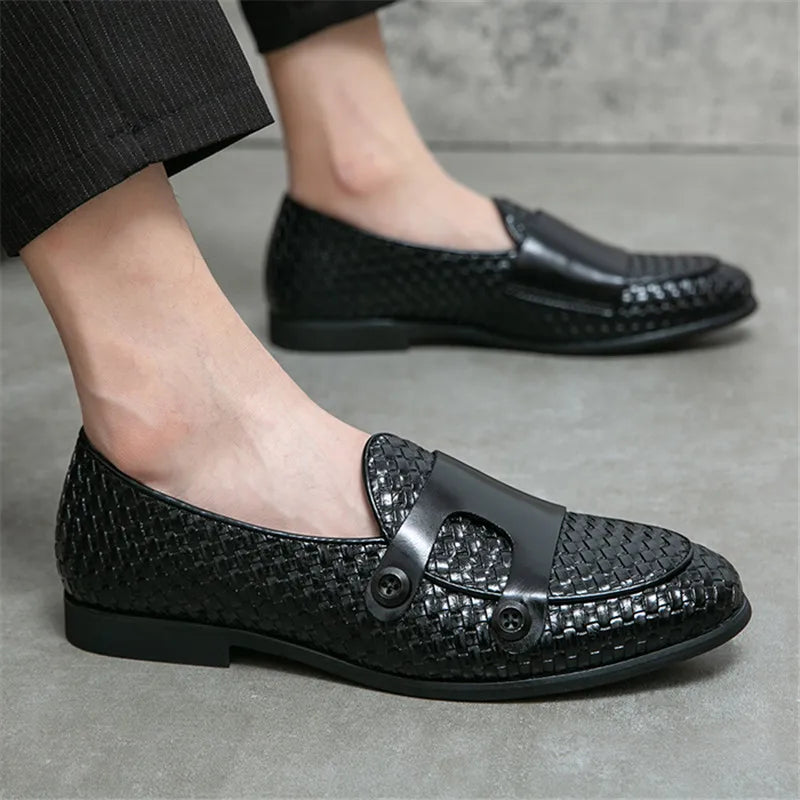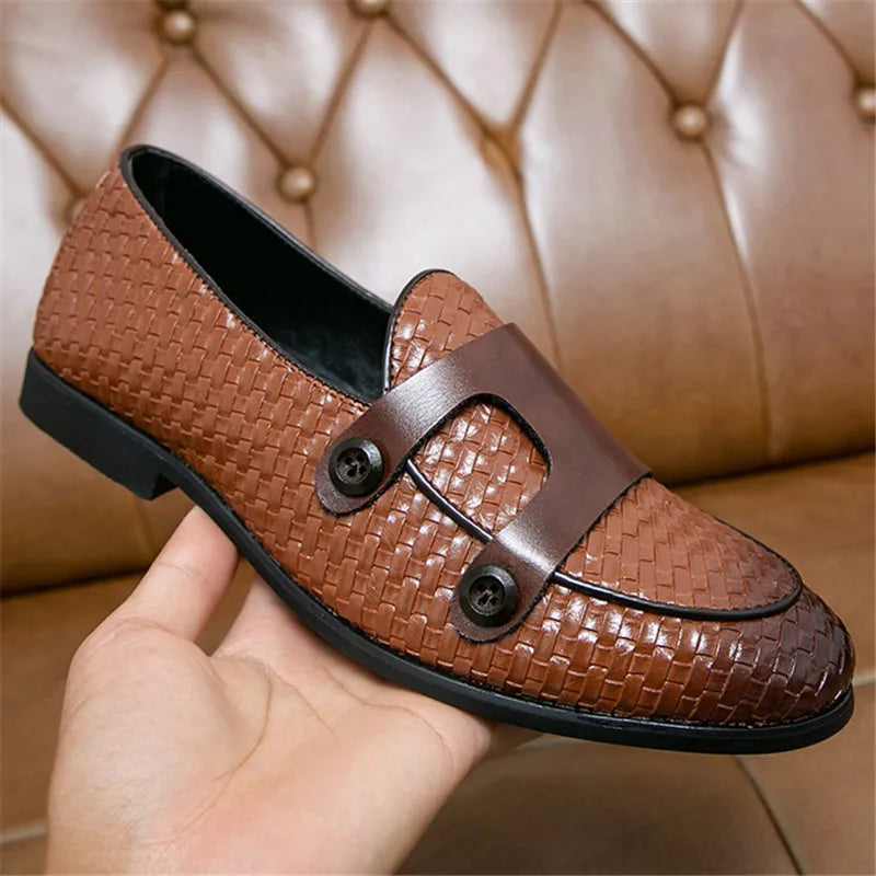 With its refined weaving pattern and glossy patent leather finish, this monk strap loafer blends statement style with versatile wear. A cushioned footbed, breathable lining, and flexible non-slip sole keep you comfortable from weddings to business occasions.