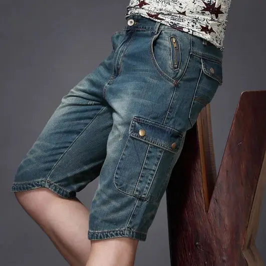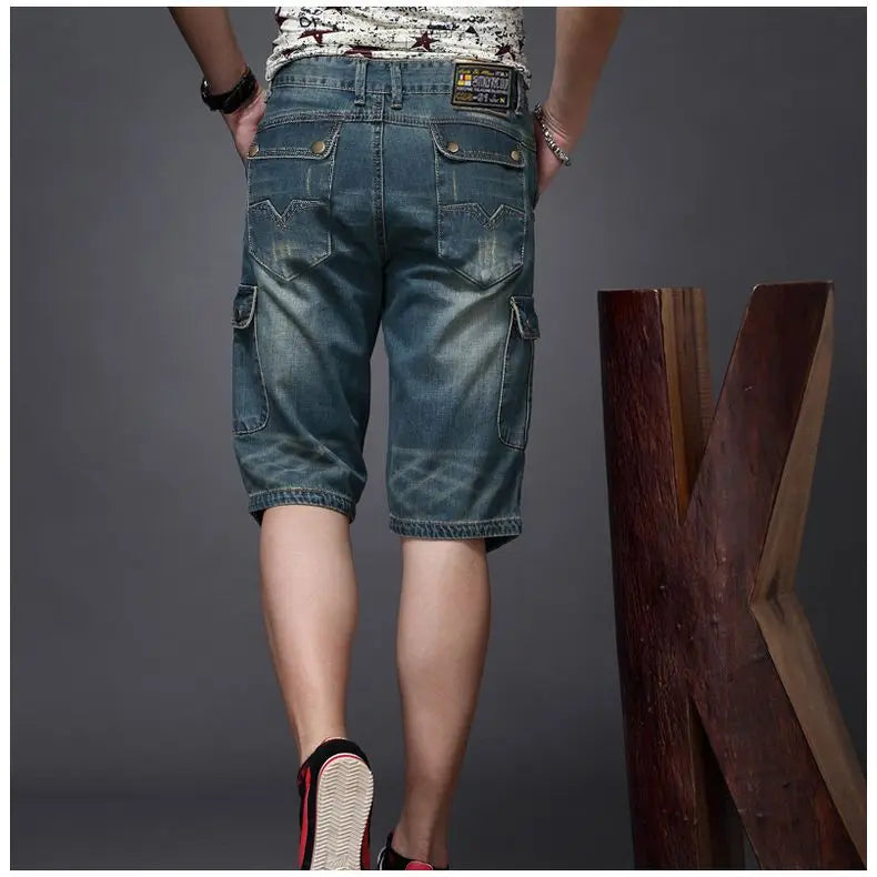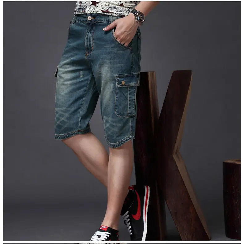 Built from breathable cotton denim, these knee-length capri shorts combine relaxed workwear utility with a clean, straight-leg fit. Designed for summer comfort, they feature multiple cargo pockets, a designer-inspired finish, and a casual punk edge that works from street to beach.