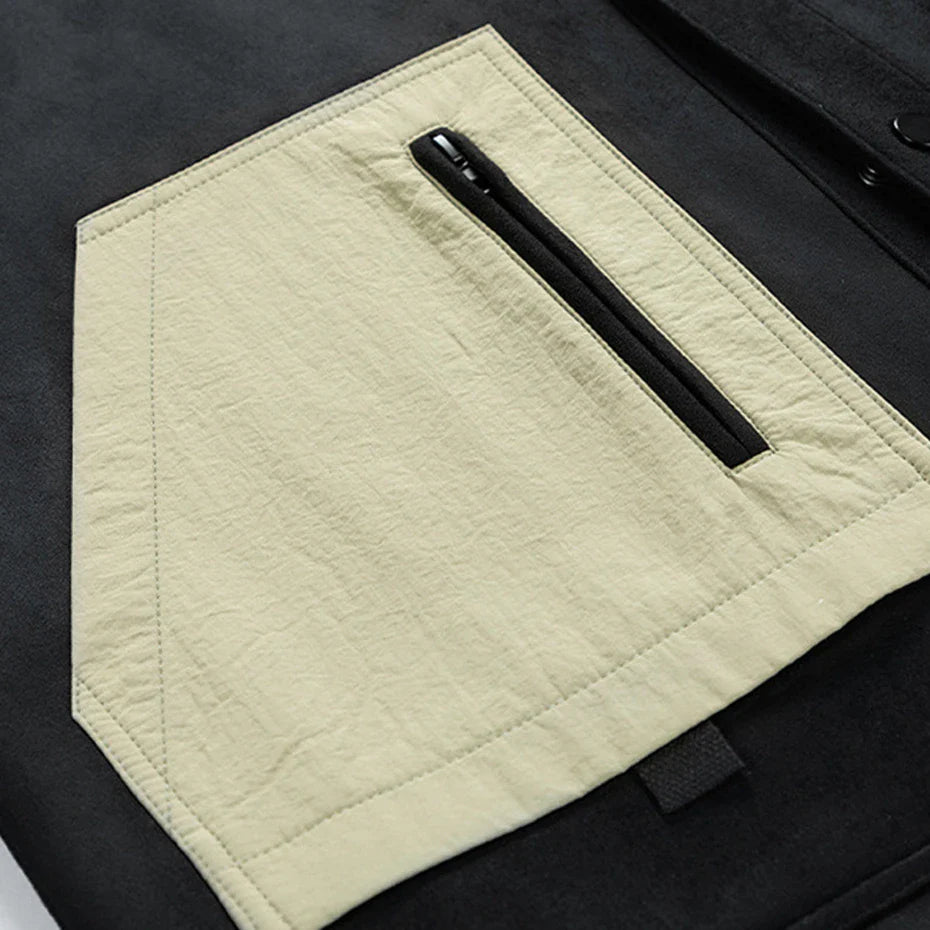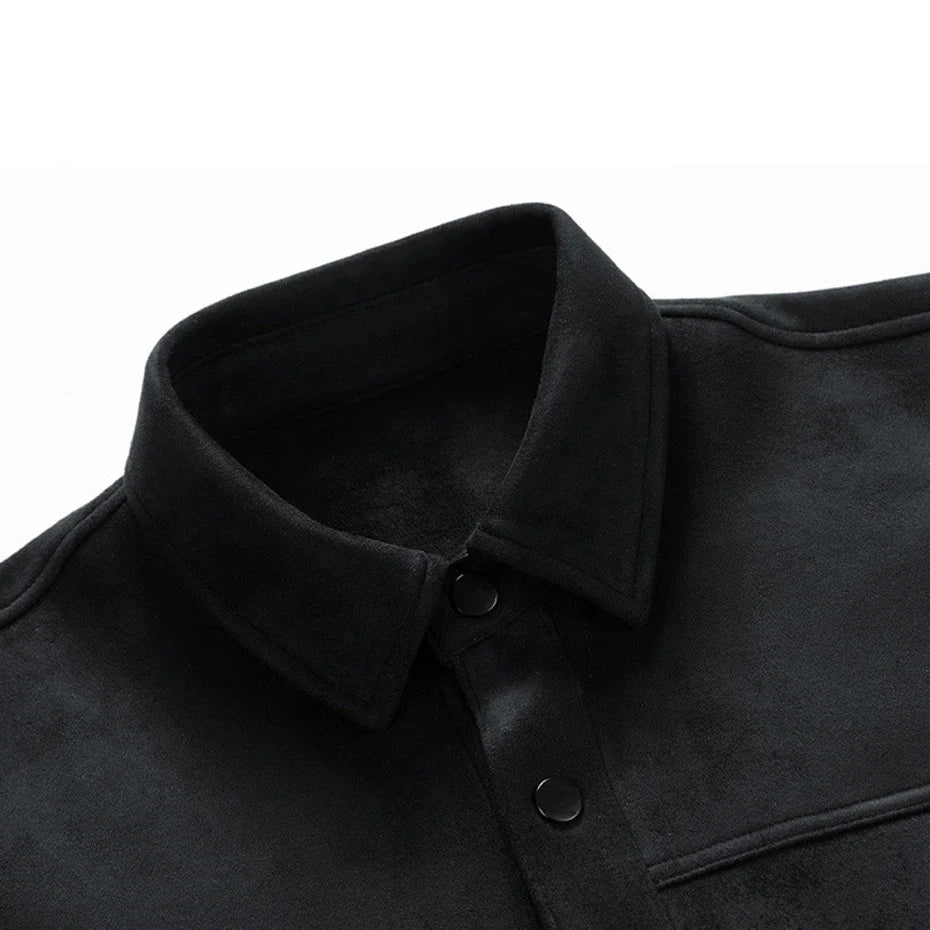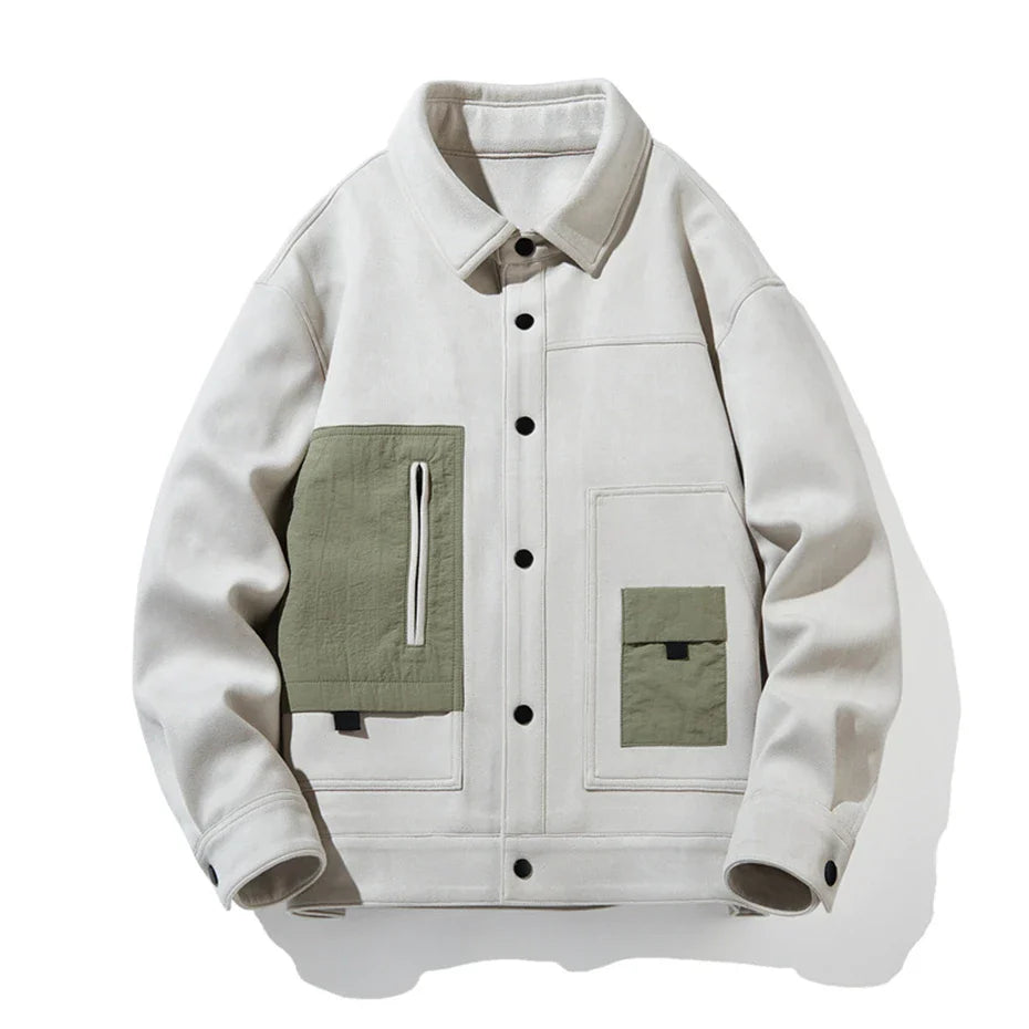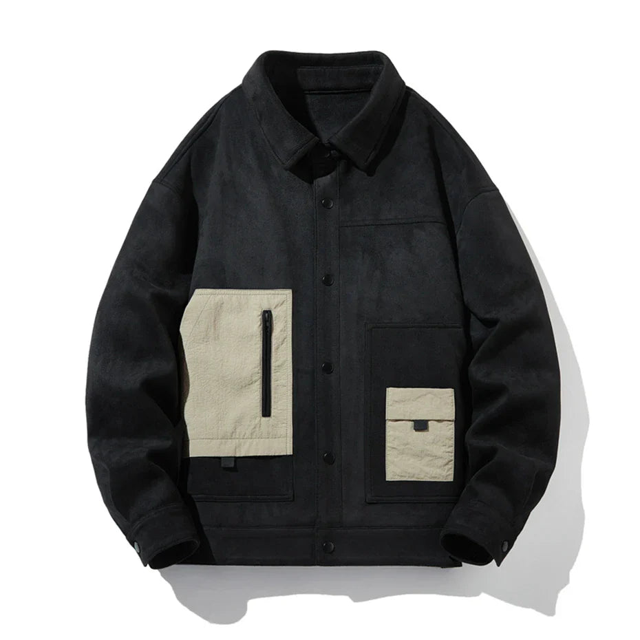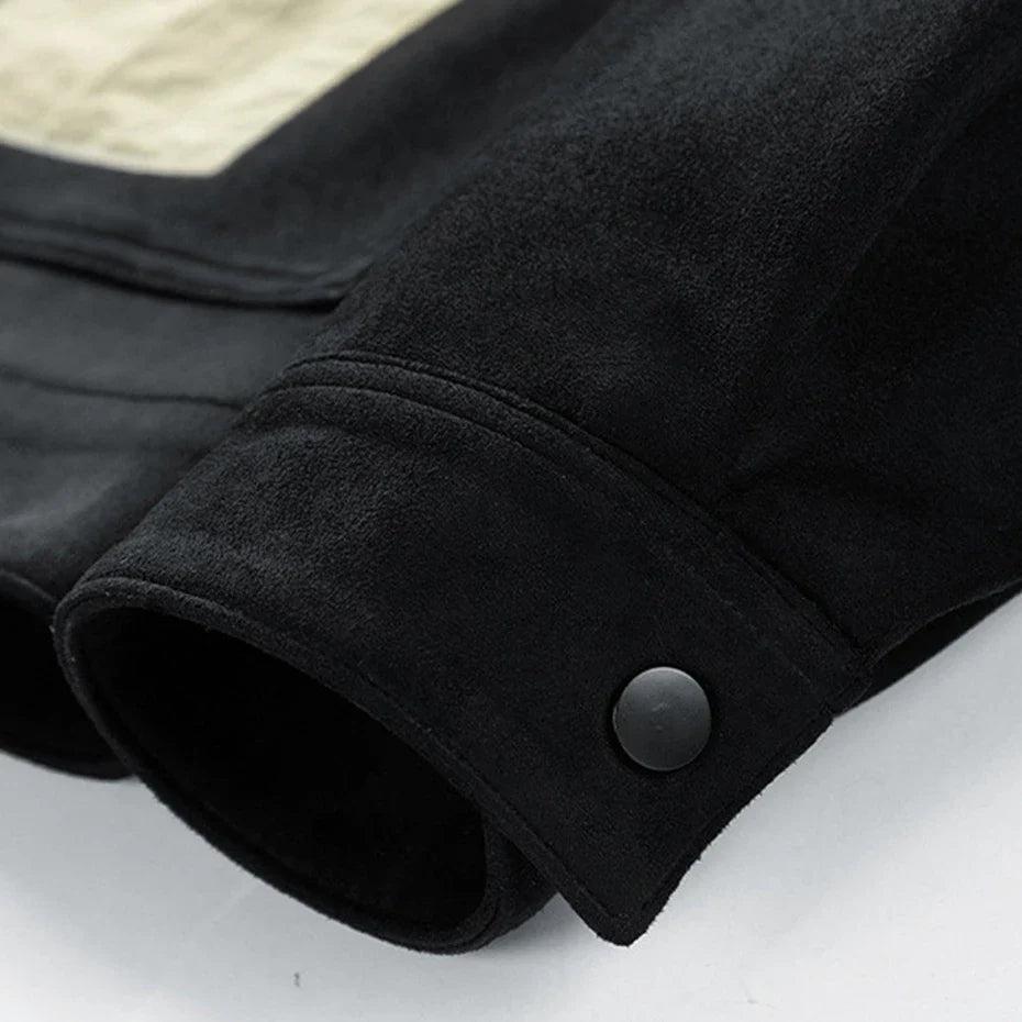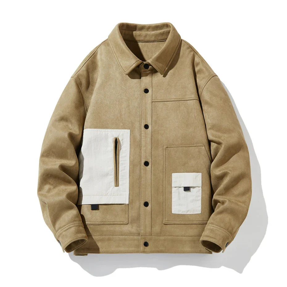 Soft, structured, and designed with bold contrast details. This suede-like jacket blends a clean, modern fit with statement pockets that add character. Snap-button closures keep it easy to wear, while the bold design makes it stand out in any setting.
