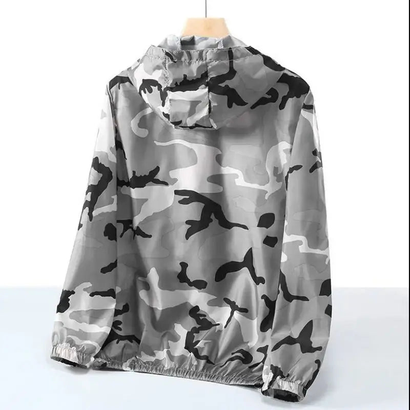 A lightweight camouflage jacket designed for outdoor sports and casual wear. With a hooded style, breathable fabric, and plus-size availability, this jacket delivers comfort and versatility for any adventure.
